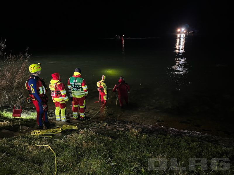 Neuburgweier, 6. Dezember 2025 – DLRG-Einheiten aus dem Stadt- und Landkreis Karlsruhe wurden am gestrigen Abend gegen 22:20 Uhr zu einem dramatischen Einsatz an den Rhein alarmiert. Ein mit einer Person besetzter Pkw war aus bislang ungeklärter Ursache an der Fährrampe beim Zollhaus Neuburgweier in den Rhein geraten. Das Fahrzeug wurde unmittelbar von der starken Strömung erfasst und sank innerhalb kurzer Zeit.