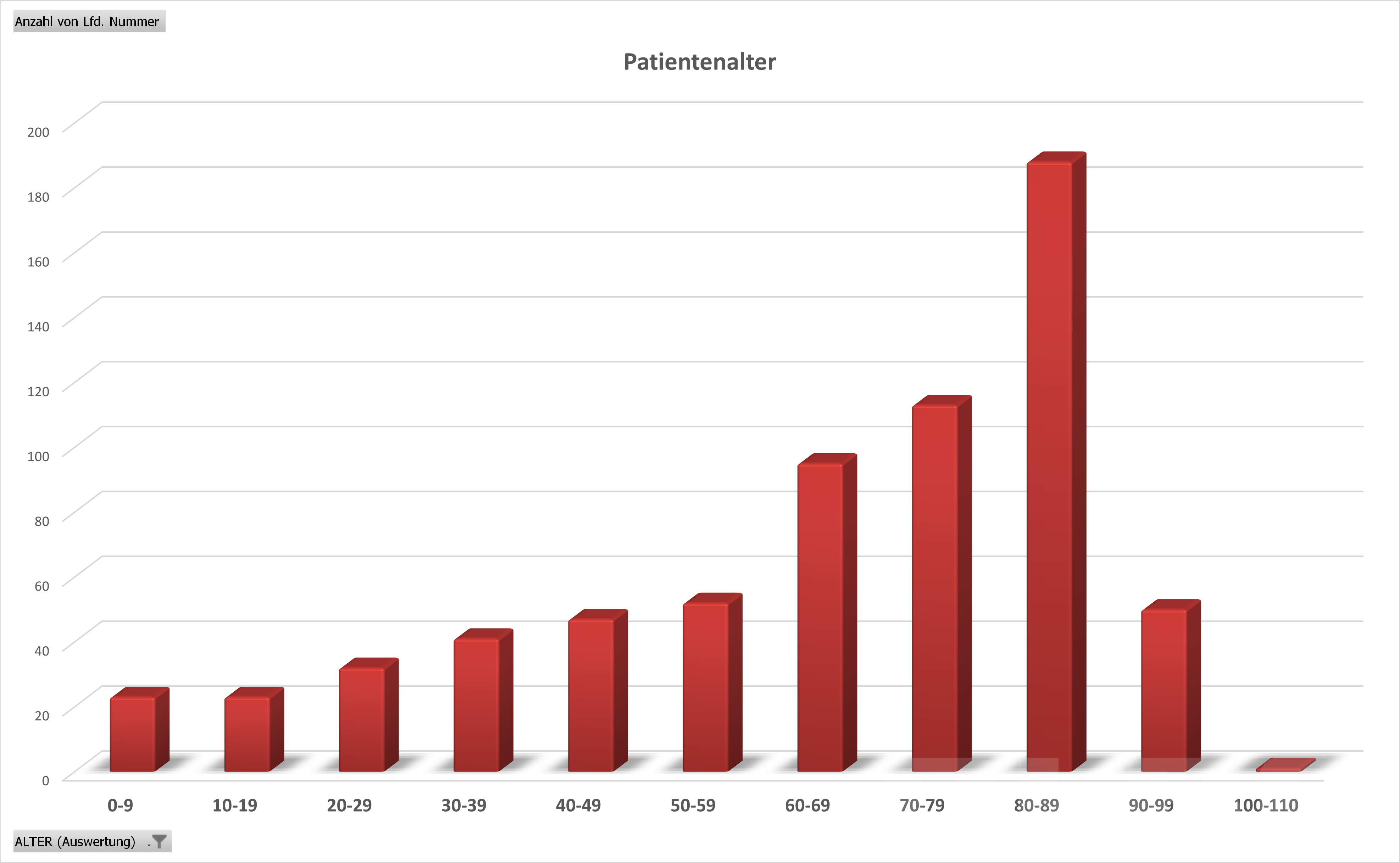 Ein Blick auf das Patientenalter lässt erkennen, dass insbesondere ältere Menschen einen großen Anteil der betreuten Patienten ausmachen. Die höchsten Fallzahlen liegen in den Altersgruppen zwischen 70 und 89 Jahren. Gleichzeitig verdeutlichen Einsätze bei Kindern, Jugendlichen und jüngeren Erwachsenen, dass die Notfallhilfe für alle Altersgruppen relevant ist.
